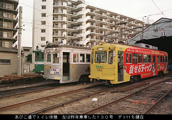 折り返してあびこ道の車庫へ入り再び休憩。廃車になっている251形は解体されずに昨年と同様に健在?でした。ここでまたもや記念撮影。全員乗車後、つり掛けの音を響かせて、えびす町へ到着し解散となりました。