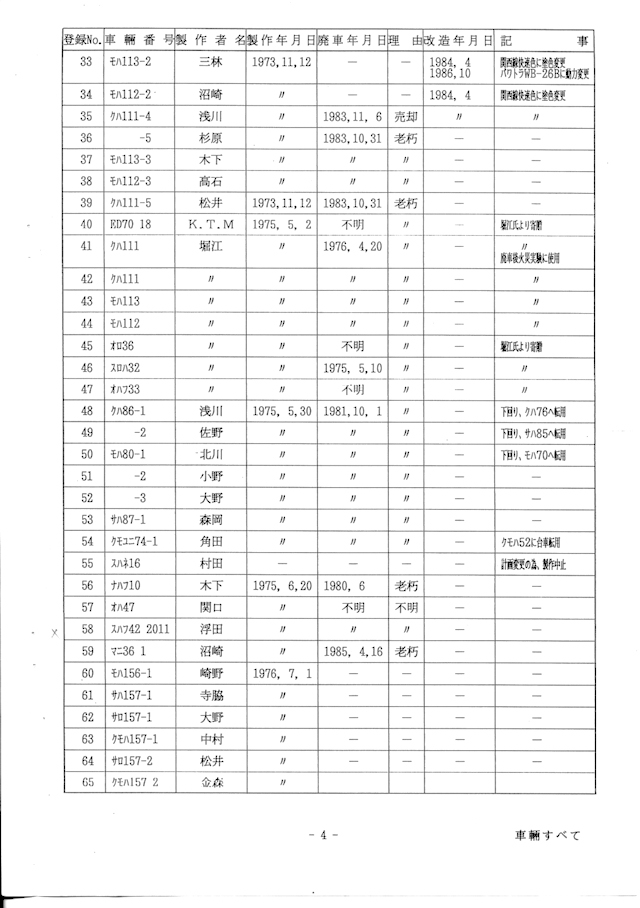 製作年月日 1983.11.03 登録a@ 177 178 179 174 175 176 車両番号 3006 3106 3506 3005 3105 3505 製作者 高田 武井 大森 俵 中野 岡田 DV18A×2