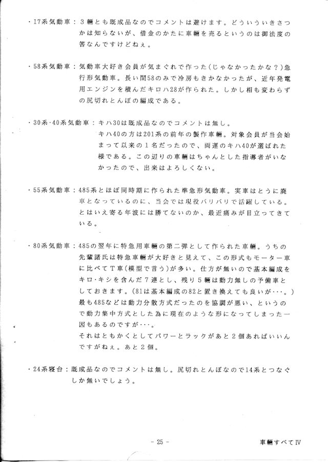 大阪電気通信大学鉄道研究会では、新入生(新会員)に必ず1/80 16.5mmゲージ鉄道模型車輛を製作することを方針としてきました。総製作車輛数は240輛を越え、他に類をみない車輛保有クラブでありました。現在はNゲージへ移行してしまったため、過去に製作された車輛たちをOB会にて引き取って管理しております。老朽化により相当数が廃車されていますが、それでもまだかなりの輛数が健在しております。ここでは、大学鉄研より管理移籍された車輛たちの資料をごらんいただける予定です。