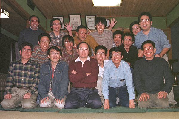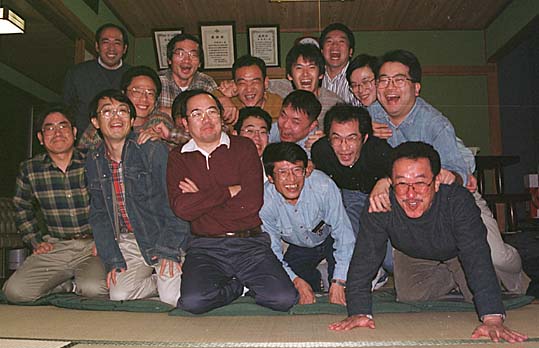 1999年度のOB会総会は、例年通り美松寿司2階の大広間にて開催されました。出席者は16名+現役1名。事務局報告と宴会のあと記念撮影。今回は近藤氏の『一本締め』でめでたくお開きとなりました。