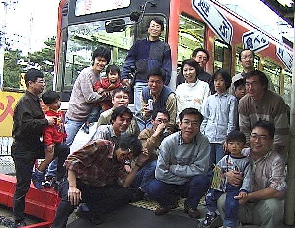 恒例となった阪堺電気軌道の貸切電車による忘年会です。 今回は子ども連れ参加が多く、総勢19名の大盛況?となりました。車両は700形の703号です。 予定通り14:30に天王寺駅前を発車し、一路浜寺駅前へ。 いつもどおり浜寺駅前でトイレ休憩と記念撮影。 折り返してあびこ道の車庫へ入り再び休憩。全員乗車後、えびす町へ到着し解散となりました。